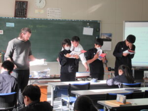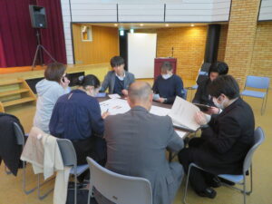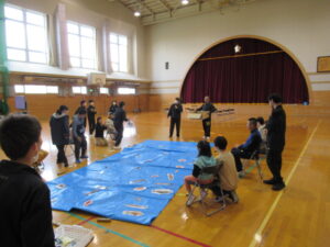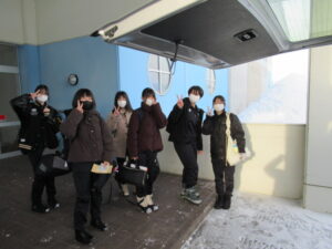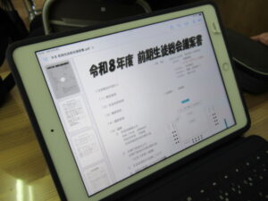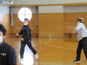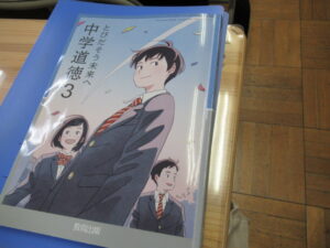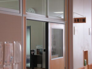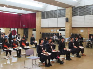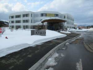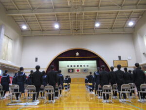 昭和40年(1965)9月1日知内村立知内中学校として認可をうけ、各中学校が廃止され、それぞれが知内村立知内中学校の各分教室に改称されました。この日を新しい中学校の開校記念日と設定しています。統合校舎が完成した昭和42年4月、矢越分教室を除き各分教室が廃止されました。また、各称も同年10月の町制施行により知内町立知内中学校とされました。翌43年4月矢越分教室が廃止になり、名実ともに統合中学校となりました。また、統合中学校の象徴として、42年に校章と校歌が制定されました。平成8年(1996)新しい時代の要請にかなった校舎に改築されました。