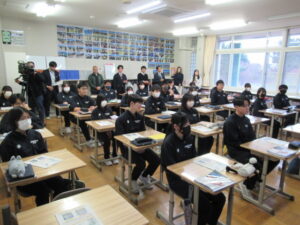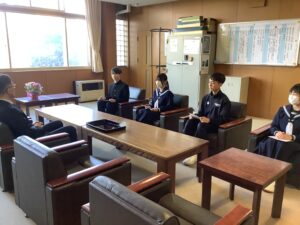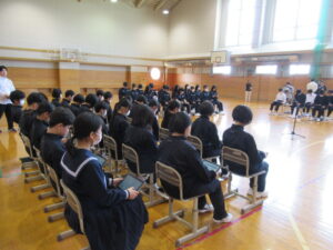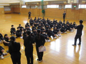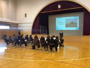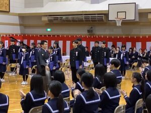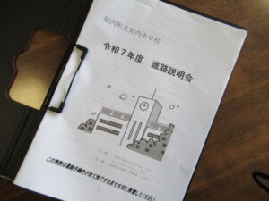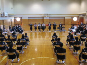 本校は教育の理想の場としてさらなる質的向上を目指すため、知内村立知内、涌元、湯ノ里、中ノ川、矢越中学校を統廃合し、新たに開校した中学校です。