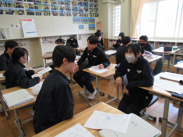 3年生は、「話を聞く態度」をロールプレイングで実践する中で、アサーション(相手を尊重しつつ自分の意見を適切に伝えること)について学びました。 3年生にとっては、最後のキャリア講話となりました。講師の斎藤様からは、最後に生徒たちへ「人生は思った通りにならない。やった通りになる。」という、力強いメッセージをいただきました。