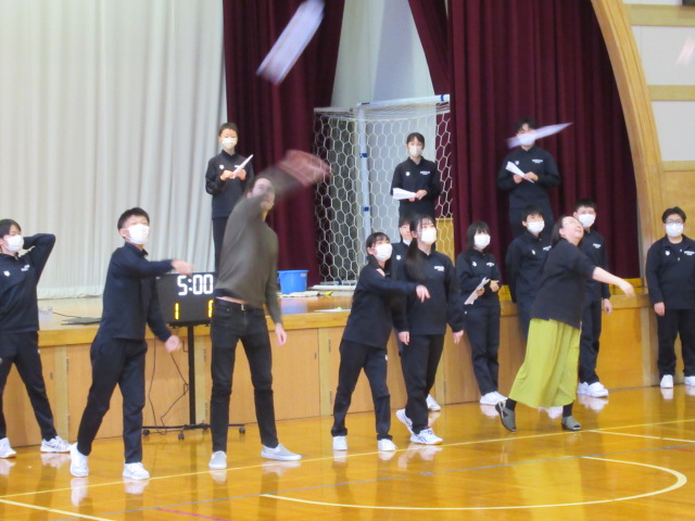 12月23日(火)、生徒会による全校企画「紙飛行機距離対決」が行われました。 このレクレーションは、制限時間内に自作した紙飛行機を飛ばし、その飛行距離を競うというもの。会場には、空気抵抗を考えた鋭い形状のものから、ゆったりと空を舞う個性的なものまで、生徒一人ひとりのこだわりが詰まった「機体」が並びました。