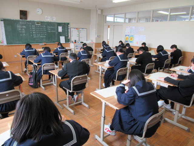 テストは、国語・数学・社会・理科・英語の5教科で行れました。特に1年生にとっては、中学校入学後初めての大きなテストとなりました。開始直前までは少し緊張した面持ちも見られましたが、チャイムが鳴ると同時に表情が一変。最後まで粘り強く解答用紙に向かう姿が非常に印象的でした。