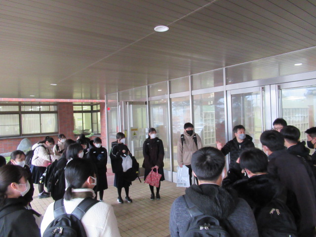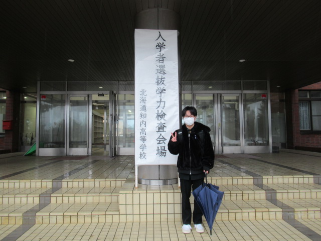 本日3月4日(水)、いよいよ公立高校入試の学力検査当日を迎えました。知内高校では、早朝より、本校の進路担当教諭が集合場所に待機し、受験生一人ひとりの健康状態の確認と点呼を行いました。
