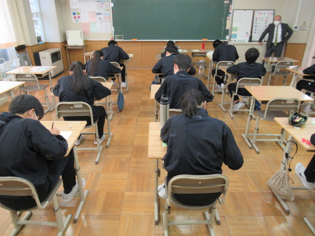 また、3年生は本日午前10時に発表された「公立高校志願倍率」を確認しました。 具体的な数字を目の当たりにし、教室には一段と引き締まった空気が流れていました。入試本番までの詳細な日程を改めて確認し、決意を新たにしている様子が見て取れました。