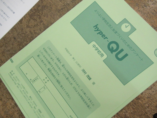 1月26日(月)、全学年の学級活動の時間において「ハイパーQU」を実施いたしました。ハイパーQUとは「楽しい学校生活を送れているか」「クラスの中に悩みごとはないか」など、生徒一人ひとりの心理状態や、学級の満足度を客観的に把握するためのアンケート検査です。