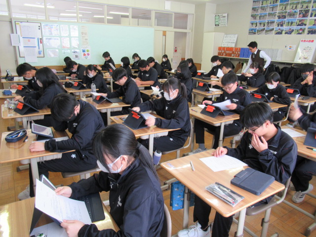 単に現状を調べるだけでなく、その結果をもとに、より居心地の良いクラスづくりを計画したりするための大切な指針となります。どの教室でも、生徒たちは自分自身の学校生活を振り返りながら、一問一問に真剣に向き合っていました。