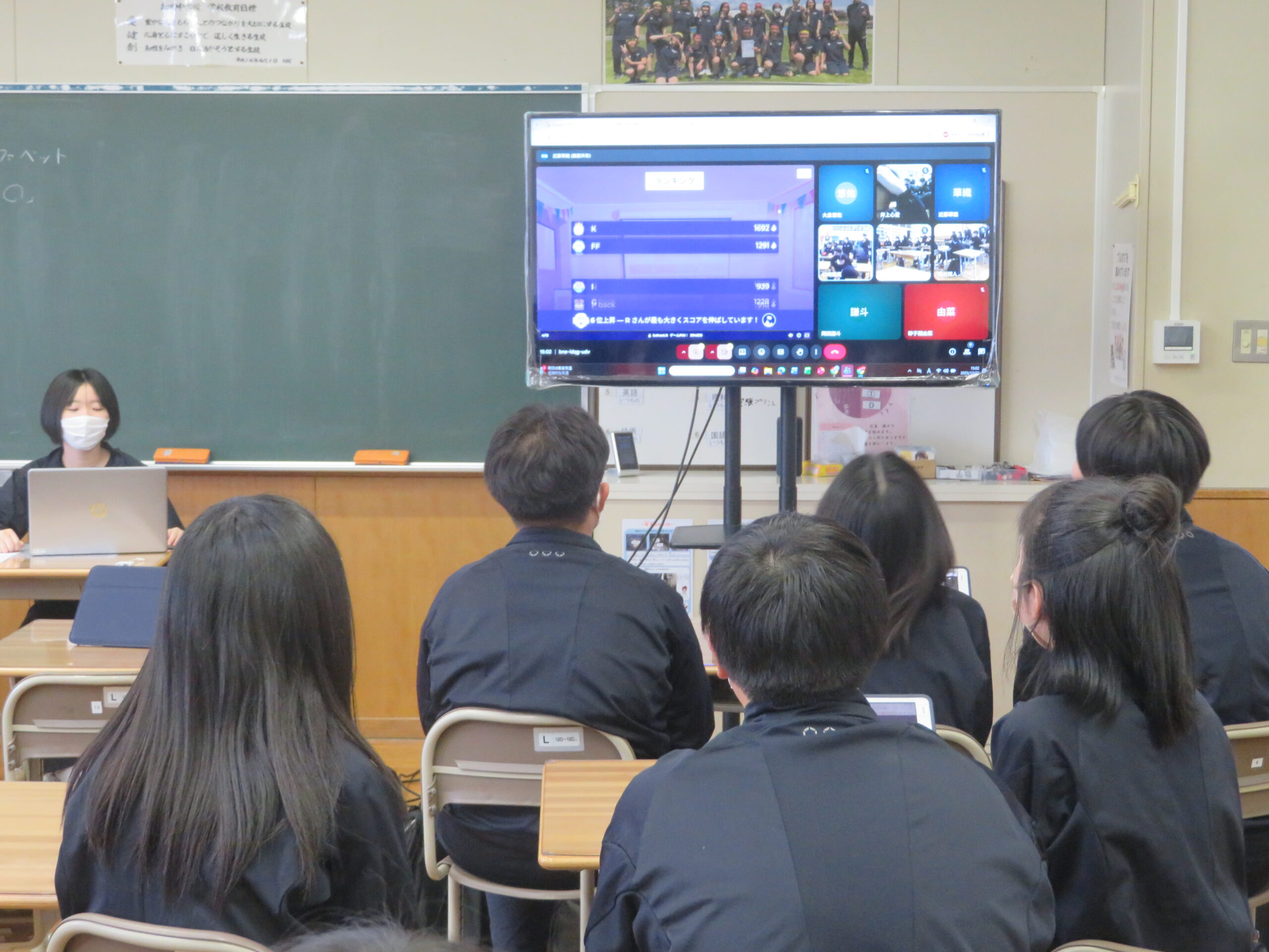 22日(月)放課後、学習委員企画の「Kahoot」を行いました。学習委員会がつくったクイズに、みんなは自分のクラスでタブレットで答えます。他の教室の様子もモニターに映っていて、皆 楽しいひとときを過ごすことができました。
