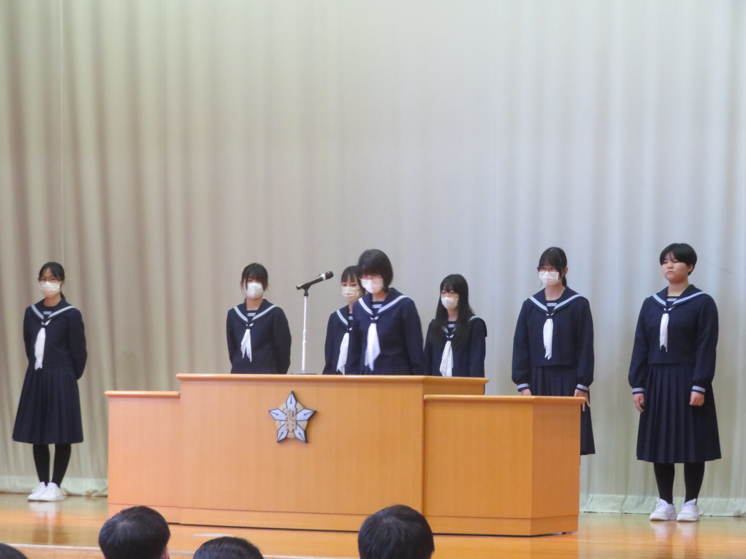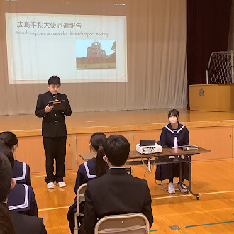 また、「表彰式」「激励会」、そして「平和大使広島派遣報告会」を併せて実施いたしました。表彰式では、日々の学習の積み重ねが実を結び、その努力をたたえられました。広島派遣報告会では、平和大使として現地で学んだ「平和の尊さ」を、自らの言葉で力強く伝えてくれました。これらの経験は、参加した生徒だけでなく、見守る全校生徒にとっても大きな刺激となったはずです。