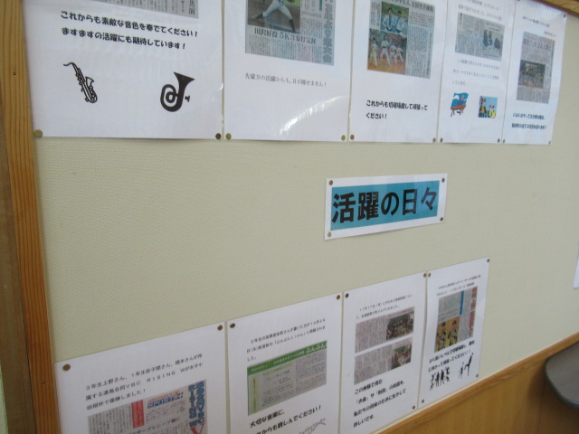 各階の廊下や教室前には、教科や総合的な学習の時間、学校行事を通じて制作された作品が並んでいます。掲示物一枚一枚に、生徒たちの頑張りと学校の活気が詰まっています。ご来校の際は、ぜひ足を止めてご覧いただけますと幸いです。