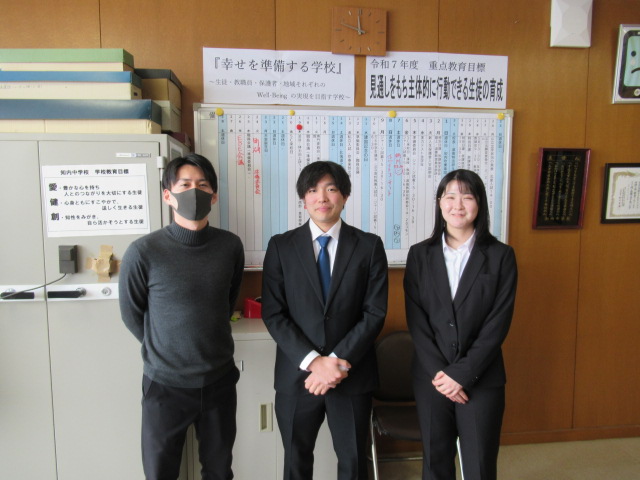 2月19日(木)、本校に教員志望の大学生2名が来校しました。 今回の訪問は、将来教壇に立つことを目指す学生たちが、実際の授業現場を通じて「教師としての心構え」や「効果的な授業の進め方」を学ぶことを目的としています。