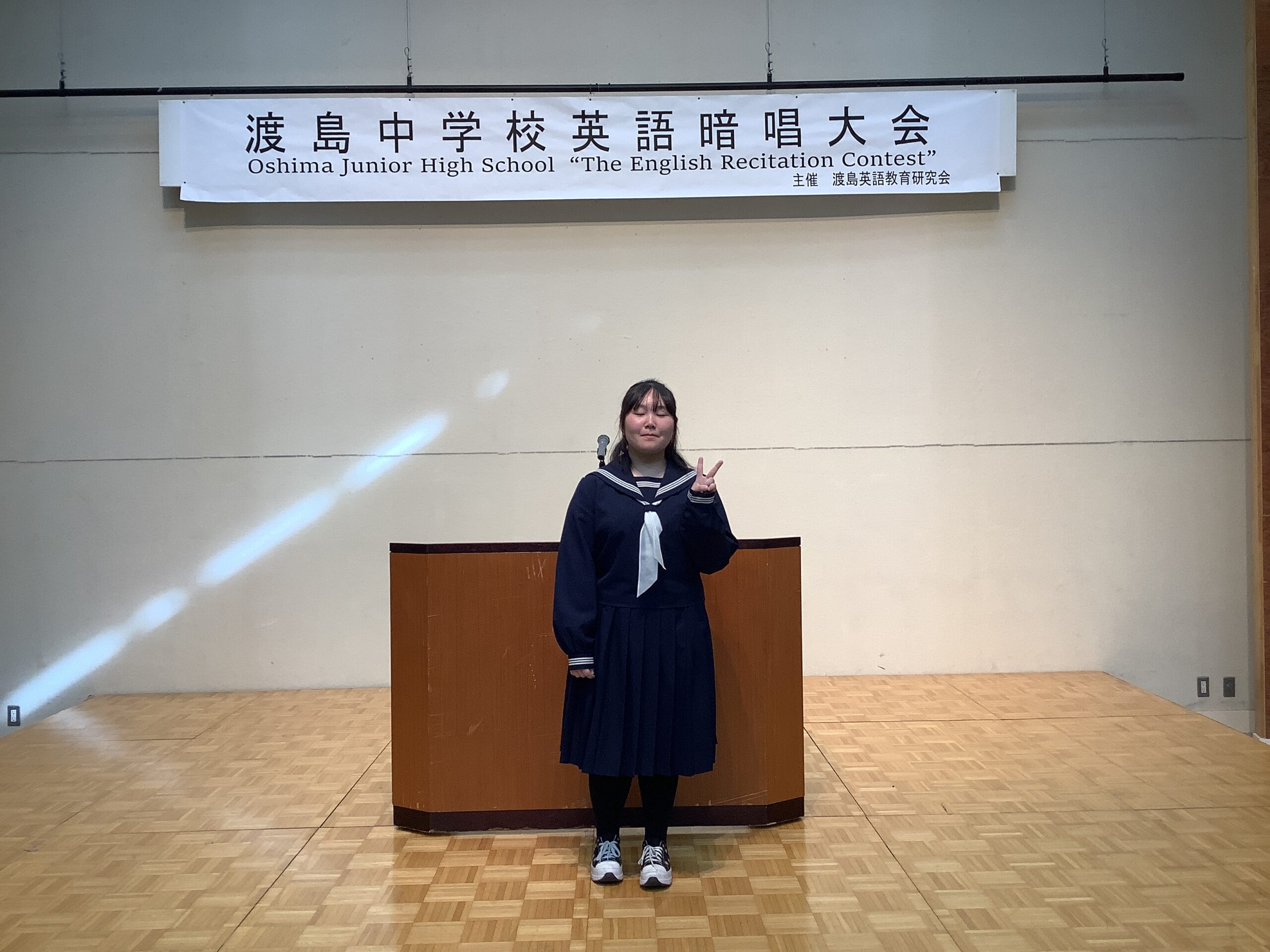 本日10月17日(金)、北斗市農業振興センターにて開催された「渡島中学校英語暗唱大会」に、本校代表として3年生の村上七海さんが出場いたしました。