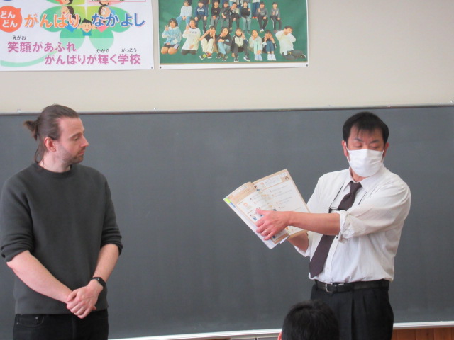 知内小学校にて「英語乗り入れ授業」