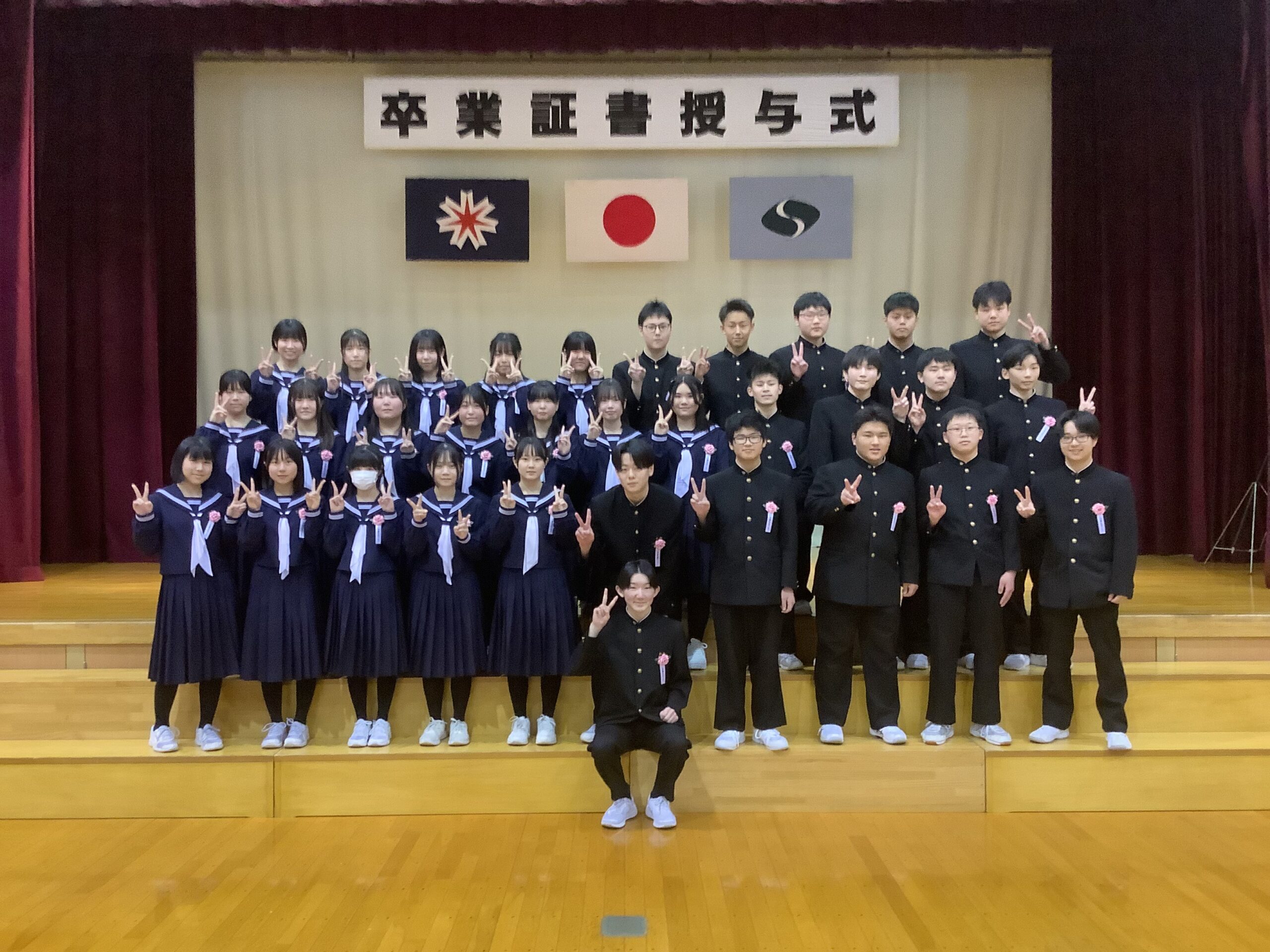 早春の柔らかな光が降り注ぐ本日、3月13日(金)。 本校において、第61回 卒業証書授与式が晴れやかに執り行われました。本日は、西山町長、堂下教育長をはじめ、20名ものご来賓の方々に駆けつけていただきました。また、日々温かく見守ってくださった保護者の皆さまのご列席を賜り、会場は大きな祝福の拍手に包まれました。
