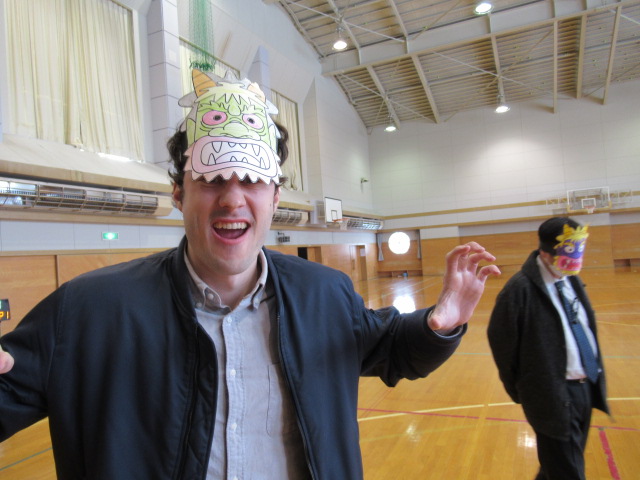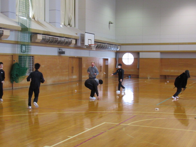 本日2月3日(火)、特別支援学級にて恒例の豆まきが行われました。まずは先生やALTが扮する「鬼」が登場!生徒たちは「福は内!鬼は外!」と元気な声を響かせながら、勢いよく豆をまきました。