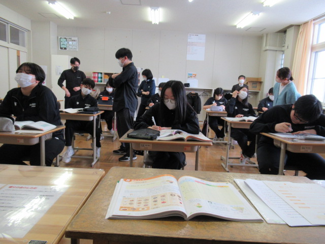 2月9日(月)、1年生の家庭科の授業において、本校栄養教諭をゲストティーチャーに招いた食育の特別授業を実施いたしました。今回のテーマは、朝食と昼食のメニューを振り返った上で、栄養バランスの整った理想的な「夕食の献立」を自分たちで考えるというものです。