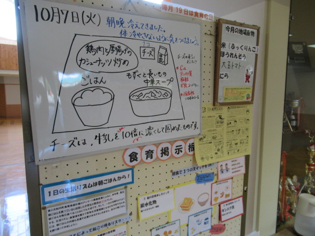本日より急に気温が下がり、本格的な秋の到来を感じます。一般的に「食欲の秋」と言われますが、本校では日常からの「食育」の取り組みのおかげで、生徒たちは毎日しっかりと給食をとり、心身ともに健康に過ごしています。