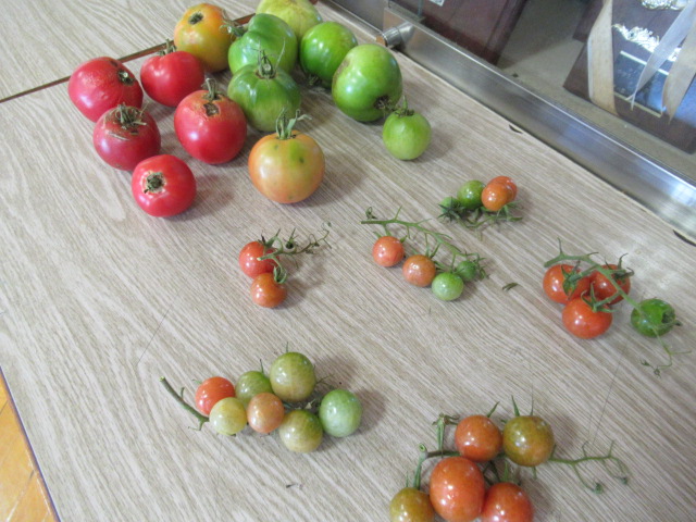 知内中学校の畑では、季節の移り変わりを感じながら、今年も多くの作物を収穫しました。特にトマトは、秋が深まる中でもまだまだ元気に実をつけています。キュウリ、ナス、枝豆など、生徒たちが収穫した新鮮な作物は、現在も生徒玄関を彩っています。これからも、食を通じて生徒たちの健やかな成長を支えてまいります