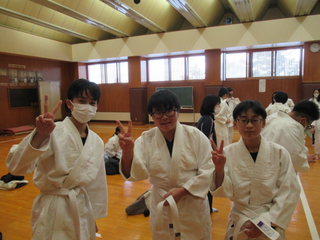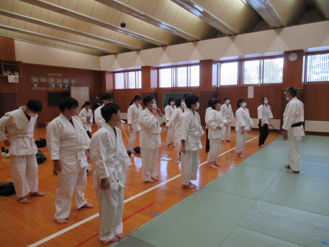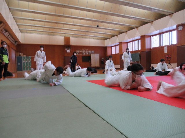知内中学校の教育目標「愛・健・創」のうち、特に「健(心身の健康)」を育む大切な学習として、今年度1年生の柔道の授業が12月10日(水)に始まりました。