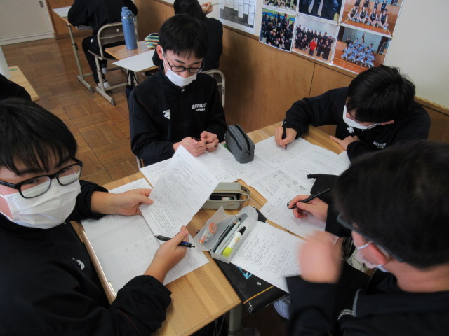 そして3年生。卒業まで残りわずかとなった今、心を込めて「カウントダウンカレンダー」を作成していました。一枚一枚に綴られるメッセージには、仲間との思い出や未来への決意が込められています。一日一日を大切に刻もうとする姿に、最高学年としての感慨深さを感じます。 雪の降る静かな昼下がりですが、生徒たちの活動は熱気に満ちています。