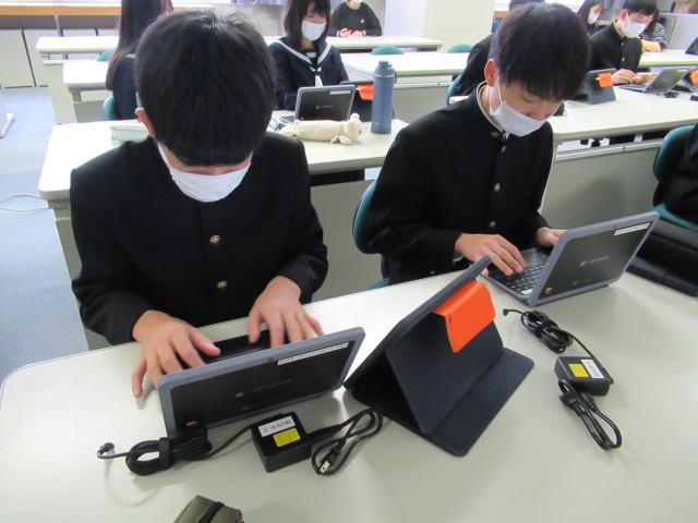 昨日行われた1年生の導入に続き、本日3月17日(火)、2年生も一人一台端末「Chromebook(クロムブック)」の導入説明会を行いました。