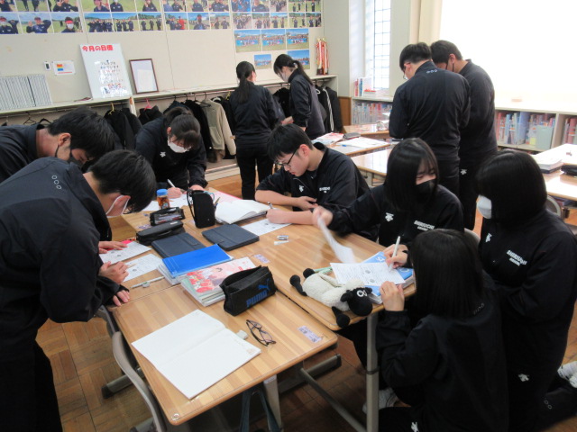 2月2日(月)、2月最初の登校日を迎えました。 今月は、進級や進路に向けて準備を進める「つながりの月」です。1時間目から、どの教室でも集中して学習に取り組む生徒たちの姿が見られました。 1年生(英語) 2日後に控えた実力テストに向け、これまでの総復習を行いました。自分の課題と向き合いながら、一問一問丁寧に確認する姿が印象的でした。